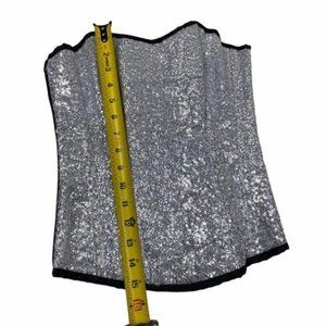 Zipper on the side of corset to make for easy closure! no rips, stains or tears. Comes from smoke free home. Great for an evening out, I wore with black skirt.