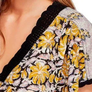 Free People Short Sleeve Black Leilani Printed Crop Top