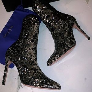 Beautiful aquazzura sequin sock booties. Comfortable. Looks beautiful on. Size 39. Retails for $895. Worn once to an event. Like new