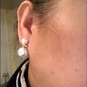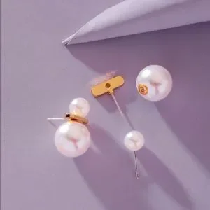 You can wear this as a single pearl alone, or wear it as a double sided earrings by putting the small pearl in the front and use the bigger pearl in the back as a closure or wear it exactly as the picture shown, you can also wear just the gold bar as its own as a dainty earrings. So many choices!