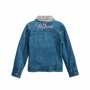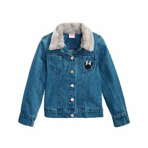 NEW Disney Minnie Mouse Jacket Toddler Girls Faux Fur Trim Long Sleeve Denim Blue 2T