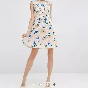 ASOS Aline Dress with Pleated Yoke Front in Floral Print