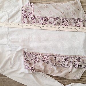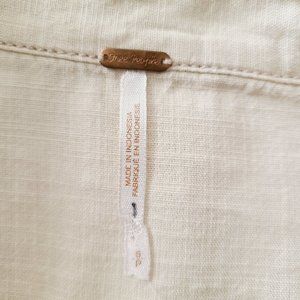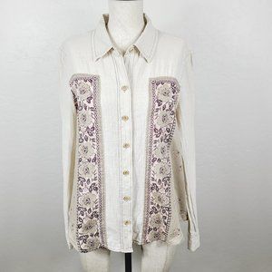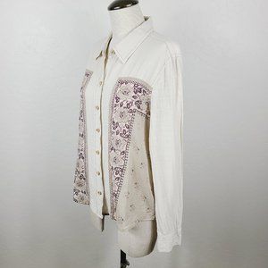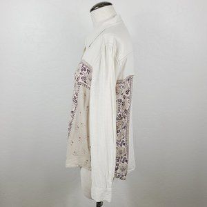 Free People Top S Ivory Burgundy Floral Lightweight Button-Front Collared Shirt