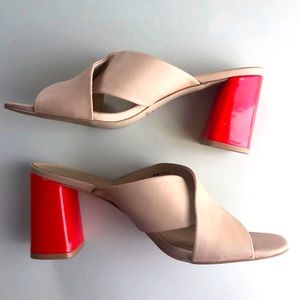 Kate Spade Block Heels / Mules with fun red accent heels.
