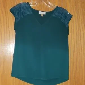 Ann Taylor LOFT Petite Teal Tank with Lace on Shoulders Size XXS. Soft polyester material. I have same top available in purple.