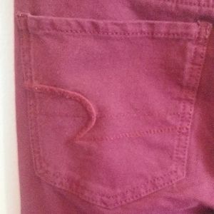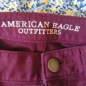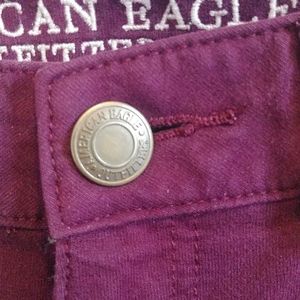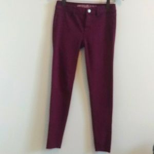 AMERICAN EAGLE JEGGINGS SUPER STRETCH SIZE 2 SKINNY PLUM COLORED ZIPPER AND BUTTON FAUX FRONT POCKETS AND TWO FUNCTIONING BACK POCKETS