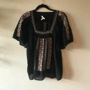 Joie Tahoma Embroidered Blouse black mexican influence worn by CECe on new girl