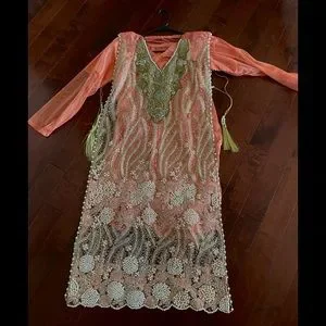 New dress never worn. Jacket style Salwar top. Beautiful embroidered dress. Perfect for a wedding.