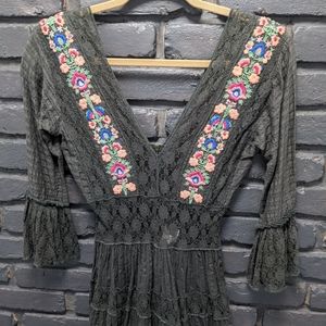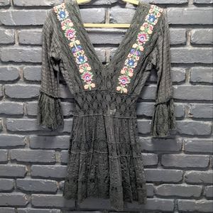 Only worn once! only flaw is a small hole in the shoulder area pictured above- otherwise in perfect condition. very unique, elegant dress, love it but never get a chance to wear.