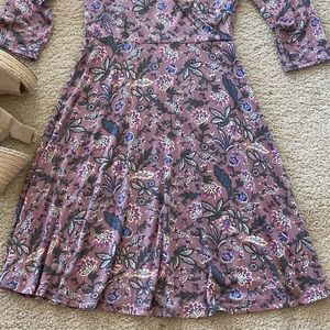 Flower Print Faux Wrap Dress. Gorgeous wardrobe staple! Add a jean jacket for the cooler days. Mauve color. Pullon styling. 3/4 sleeves. Faux wrap. 62 polyester 33 viscose 5 spandex. Fit is true to size. New boutique item.