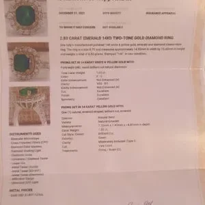 Gift Idea: Genuine appraised 2.88 Carat Emerald 14KT Two-Tone Gold Diamond Ring