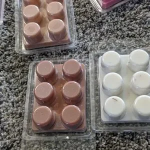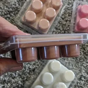 each one contains six melts the size of a rolo. Extra wax at the top of each one.