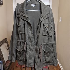 I love that this is very moto without being too masculine, still has a very feminine feel to it with the adjustable gather at the waist. Great light weight fall jacket, or if you're like me and run hot, great year round! Ha!
