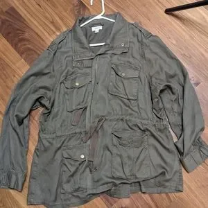 Khaki green military style flak jacket! Worn once!