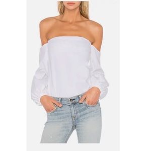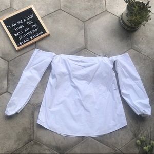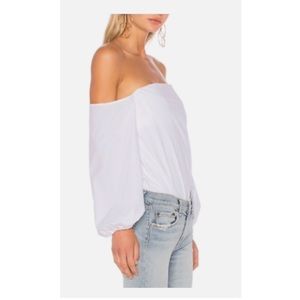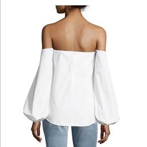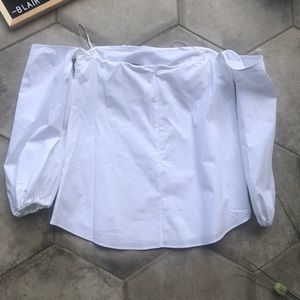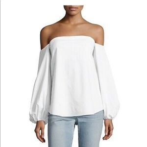 Theory LAUREEMA Off Shoulder BuildIn Bra Poplin White Top Ballon Puff Sleeve