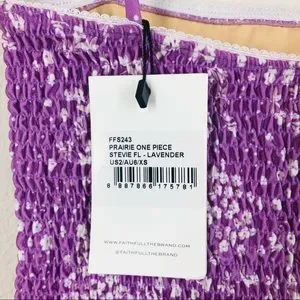 NWT Faithfull The Brand Prairie One Piece Swimsuit. Size: XS. Color: Purple. Unused. See all photos for visual description of the actual item and website description. Hygienic liner is still intact. The item pictured is the exact item that you will receive after purchasing.