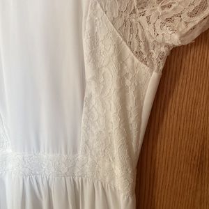 ASOS US Size 8 Flowy White Short Sleeved Dress w Lace Accents Falls Below Knee