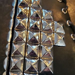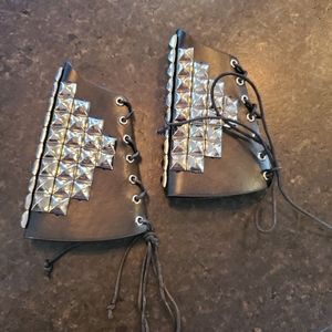 🐕Rescue Fundraiser🐕 Pair of wrist gauntlets in black leather with silver metal studs. Tie closure with black cord. 7" long, 9" wide at forearm, 6" at wrist. Studs approximately 5/8" square. Great for Halloween, Cosplay, Larping, Motorcycle riding. 100% of the proceeds from the sale of this item will be donated to Grateful Greyhounds Rescue www.gratefulgreys.org