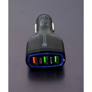 3 X Black Car Chargers 3 port QC Quick Charge , work with all devices including iPhones, Samsung, LG. Android phones a d all other devices, charge 3 devices simultaneously.