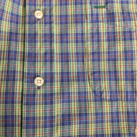 Tommy Hilfiger blue, green, red plaid short sleeve shirt with crest size large