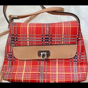 Cute red plaid cross body purse.