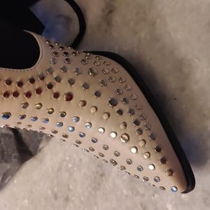 Hi, could you post photos of actual shoe? Stock photos are nice but I’d like to see the front of the actual shoe. And I’d like to know the heel height measurement at back of heel. Thanks