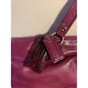Coach Berry Patent Leather Poppy Daisy Liquid Gloss Tote Bag With Wallet #F20004.