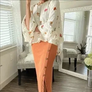 Beautiful flowy blouse from Zara. Buttons in back of neck. Chic blouse that can styled many ways. Model is a size S and 5”2