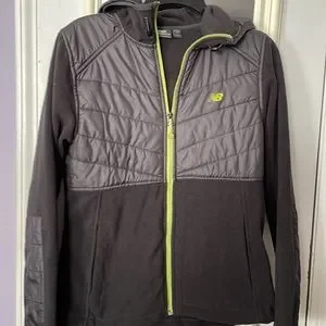 Beautiful gray fleece hooded jacket by New Balance only worn a few times and in excellent used condition .