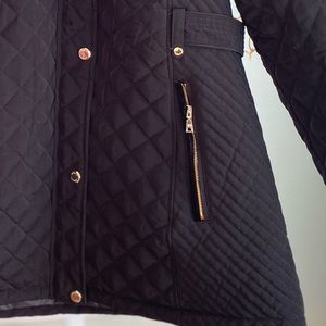 NWT Laundry by Shelli Segal quilted coat, removable hood. Zipper and snap closure, pockets also include zipper closure. Water resistant. Machine wash and dry. Approximately 30” length.