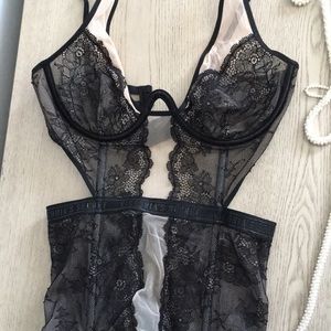 Daringly sexy black lace corset bustier from Victoria’s Secret. Built in underwire bra. Like new condition without tags. Size small.