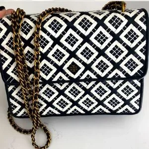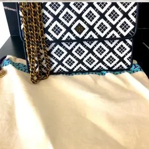 Super adorable crossbody or shoulder bag you can wear it both ways. The leather is a beautiful woven pattern. With the signature Tory Burch logo. Comes with the original dust bag. Only selling because too small for my liking.