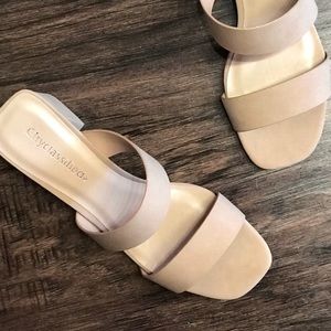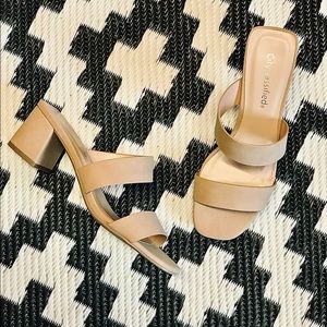 City Classified Adage Nude Faux Leather Chunky Sandal Heeled Slides