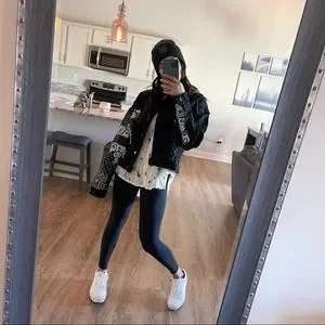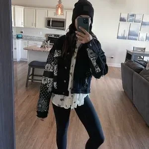 Unleash your edgy side with this not so basic jean jacket. Make a statement with this unique bandana design and raw hem edges. Soft and already broken in denim. Modeling size small. All sales help this single mama pay for my daughter’s needs. Thanks for looking ☺️