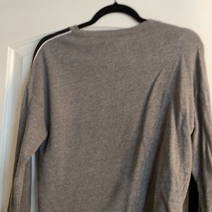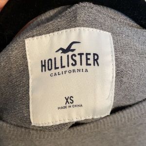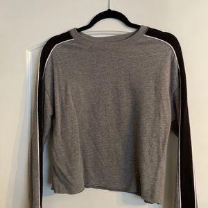 Grey cropped crewneck sweatshirt from Hollister. Size XS. grey with black and white stripe down both arms. Great condition. So cozy, soft snd comfy. Make me an offer!