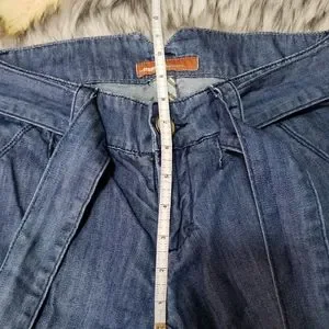 measurements in photos super cute on trend 70 vibe flattering fit just don't fit me anymore Back pockets and pleat and darts make this so Flattering sad it dont fit me anymore size 2-4, offers always considered