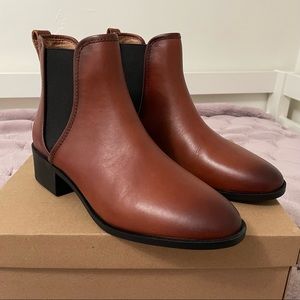 Brand new women’s boots. Never worn. Brown leather. New in box. Steve Madden Darbie Cognac