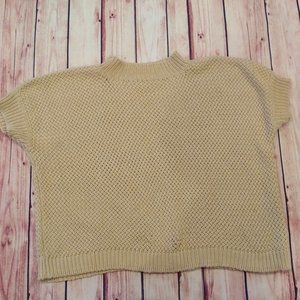 CIVIDINI Womens Woven Knit Cotton Shortsleeve Mock Neck Sweater Light Yellow 46. Dolman sleeves. Light dusty yellow, with a fun basket type knit weave. Lay flat measurements, Pit to Pit: 32 in, Shoulder to Waist: 25 in, Waist: 25 in Medium to Large.