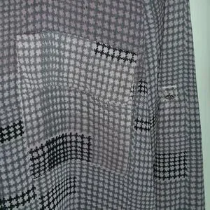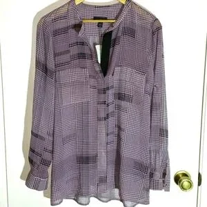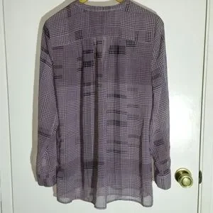 le chateau semi-sheer checked pink / black long sleeve button placket blouse.