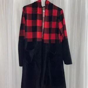 This long sleeve cardigan features a the so cute Buffalo print. This top is a light weight style with a hood and front pockets! Perfect for layering! So soft! Perfect to dress up or down. Bought from boutique, no tags provided. BUNDLE & SAVE!!! Check out my tops, leggings, and pants for an entire outfit!