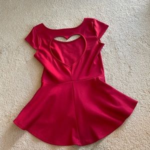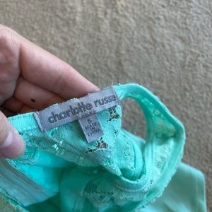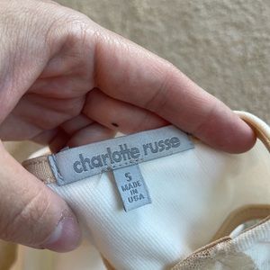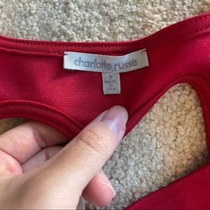 Charlotte Russe four peplum top bundle. Gently used in good condition. No trades. Includes coral and black lace top with belt, red heart cut out top, aqua lace top and white and nude top. All size small. Please ask all questions before purchasing and use the offer button, thanks!