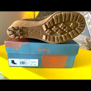Carlos Santana beautiful wedge booties - NWOT gorgeous suede material with a contrasting wood heel & the accent buckles make these a super stylish wedge booty that looks awesome with either leggings or skinny jeans!! In line new condition - only worn a few times