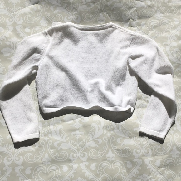 Cute and universal white shrug with one button closure for a little girl. Made by Baby Club, European size 92 (24 months or 2T). Perfect for a Sunday dress or an Easter dress. 70% cotton, 30% nylon. No stains or rips. Some fabric pilling, therefore significantly discounted. From smoke free house.