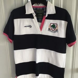 Colorful polo with cute pink accents. Worn once, too small.