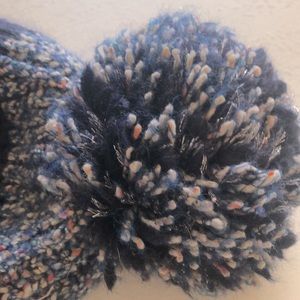 Cute J. crew Pom Pom beanie to keep you warm! Navy with pink and white metallic thread accents.