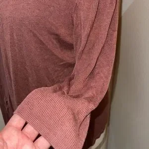 Worn twice. See pictures of detailed back. See pictures of small numbers in the thread. 3/4 sleeve.