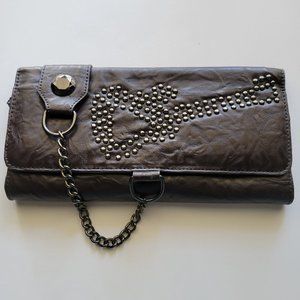 CARLOS SANTANA FAUX LEATHER BROWN MUSIC GUITAR STUD CHAIN CLUTCH PURSE