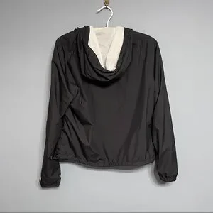 Lightweight windbreaker in great condition. There is slight wear visible on front zipper but they are all fully functional. Jacket has a hidden hole for wired headphones.