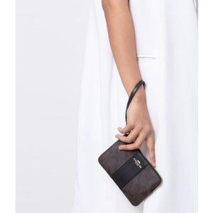 AUTHENTIC NWT Coach CORNER ZIP WRISTLET IN SIGNATURE CANVAS with crossgrain leather details