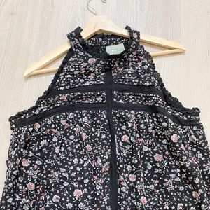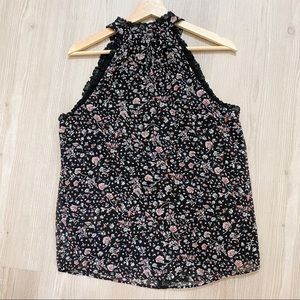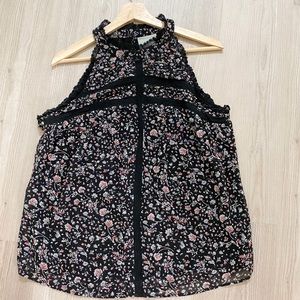 Anthropologie Women's Lace Ruffle High Neck Sleeveless Pink Floral Blouse